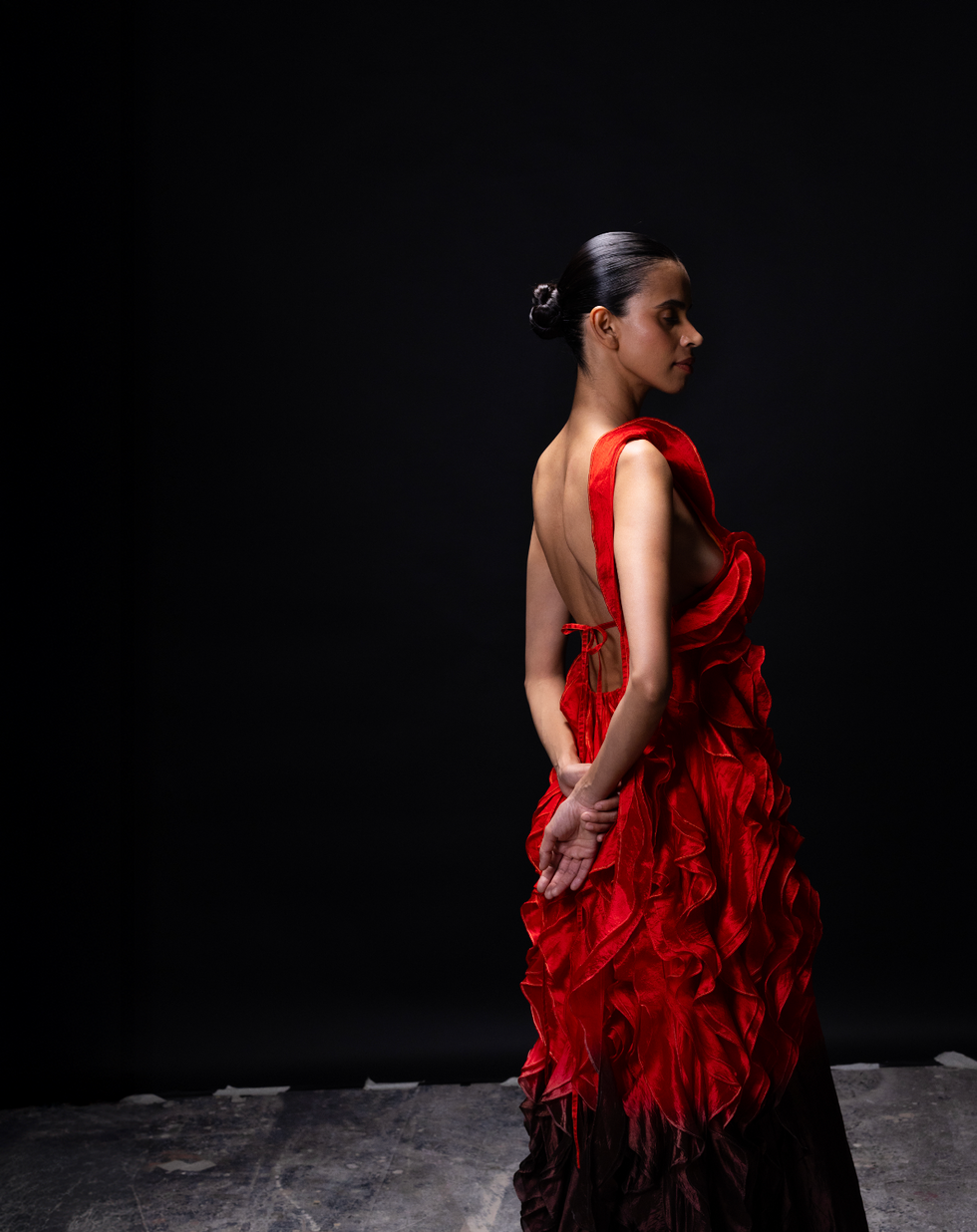 The stripped-back setting allows the garments to take center stage, their movement revealing the dialogue between strength and softness, structure and surrender. What emerges is a study in contrasts, a modern retelling of an ancient story, where myth becomes mood, and character becomes form.